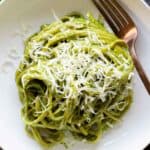 Tallarín Verde or Tallarines Verdes is a traditional Peruvian pasta dish served in any Peruvian restaurant or, you know, at any Peruvian grandma’s house. The restaurant and grandma’s house are the same thing anyway, right? It’s an easy and delicious weekday dinner recipe everyone in the family will love.